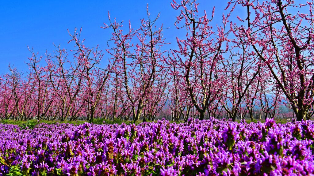 Baharın gelişiyle birlikte İznik’te şeftali ve erik ağaçlarının çiçek açmasıyla kartpostallık manzaralar oluştu. Beyaz ve pembe tonların hâkim olduğu meyve bahçeleri, ilçeyi adeta renk cümbüşüne çevirdi.