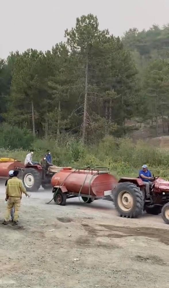 Bursa’nın Harmancık ilçesinde süren orman yangınına traktörünün lastiği patlamasına rağmen tankerle su taşıyan çiftçi Ramazan Doğru, görüntülerin sosyal medyaya düşmesiyle herkesin gönlünü kazandı. Yaklaşık 40 kilometre uzaktaki köyünden çıkıp lastiği patlamasına rağmen jant üzerinde traktör süren Ramazan Doğru, çevredekilerin uyarısına rağmen yangının söndürülmesine katkı sunmak için son ana kadar mücadele etti. Jant üzerinde 2 ton suyu taşıdıktan sonra Keles’teki Basak köyüne geri dönen Ramazan Doğru’nun patlayan lastiği, sabah saatlerinde Büyükşehir Belediyesi ekipleri tarafından yenilendi.