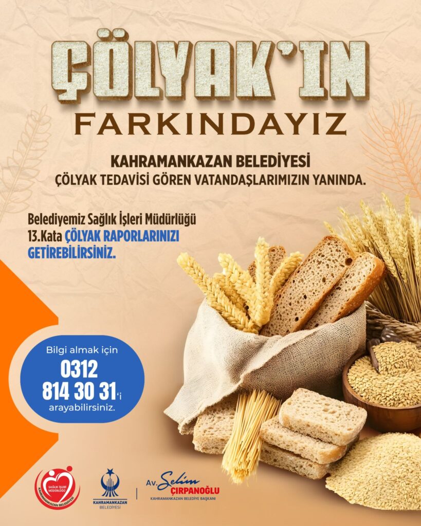 Kahramankazan Belediyesi, çölyak tanısı bulunan vatandaşların yaşamını kolaylaştırmak ve çölyak hastalarının beslenme güvenliğini sağlamak amacıyla yeni bir farkındalık projesi hayata geçirdi. “Çölyak’ın Farkındayız. Yanınızdayız” sloganıyla duyurulan çalışma kapsamında, çölyak raporu bulunan vatandaşlar belediyenin Sağlık İşleri Müdürlüğü’ne başvurarak destekten yararlanabilecek.