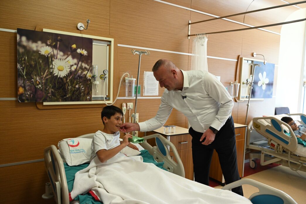 Karacabey Belediye Başkanı Fatih Karabatı, sünnet operasyonlarının ardından Mustafakemalpaşa Devlet Hastanesi’nde çocukları tek tek ziyaret ederek geçmiş olsun dileklerini iletti. Başkan Karabatı, ailelerle de sohbet ederek onların mutluluğuna ortak oldu.