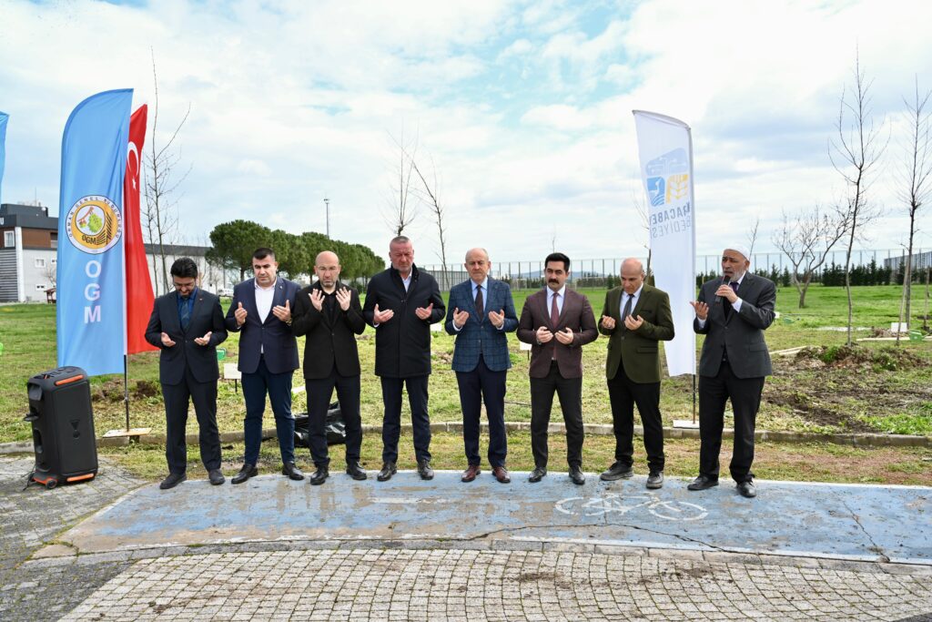 buluşturulurken, Karacapark’ta düzenlenen törende protokol üyeleri dualar eşliğinde 20 fidan