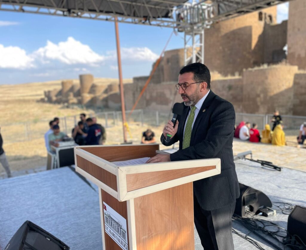 Kars Valisi Ziya Polat ise, “Fetihler ordusu ecdadımızı rahmetle, minnetle anıyorum. Bu toprakları 1453’te çağ açıp çağ kapatan Fatih Sultan Mehmet’e, bu toprakları ebedi yurt yapan Gazi Mustafa Kemal Atatürk’e selam olsun. Bu topraklar bin yıldır Türk’ün yurdu, ilelebet Türk’ün yurdu olduğunun mührünü ilk defa Sultan Alparslan Han imzasını burada atarak göstermiştir. 7 yıl sonra Malazgirt Zaferi ile Anadolu’yu Türk yurdu yapan ecdada saygıyla minnetle, bu topraklar özel topraklar, bu topraklar çok güzel topraklar ama bu toprakları güzel yapan bu millettir” diye konuştu.