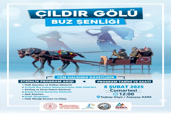 08 Şubat 2025 Cumartesi Günü saat 12.00-14.00 saatleri arasında Arpaçay Çıldır Gölü Taşbaşı Köyü Mevkiinde düzenlenecek olan Çıldır Gölü Buz Şenliği’nde; Kafkas ve Yöresel Halk Oyunları, Buz Pateni Gösterisi, Körling, Sürat Pateni Gösterisi, Buzda Arama Kurtarma Gösterisi, Ödüllü Kızak Yarışları, Halk Müziği eşliğinde Halay gibi etkinlikler yer alıyor.