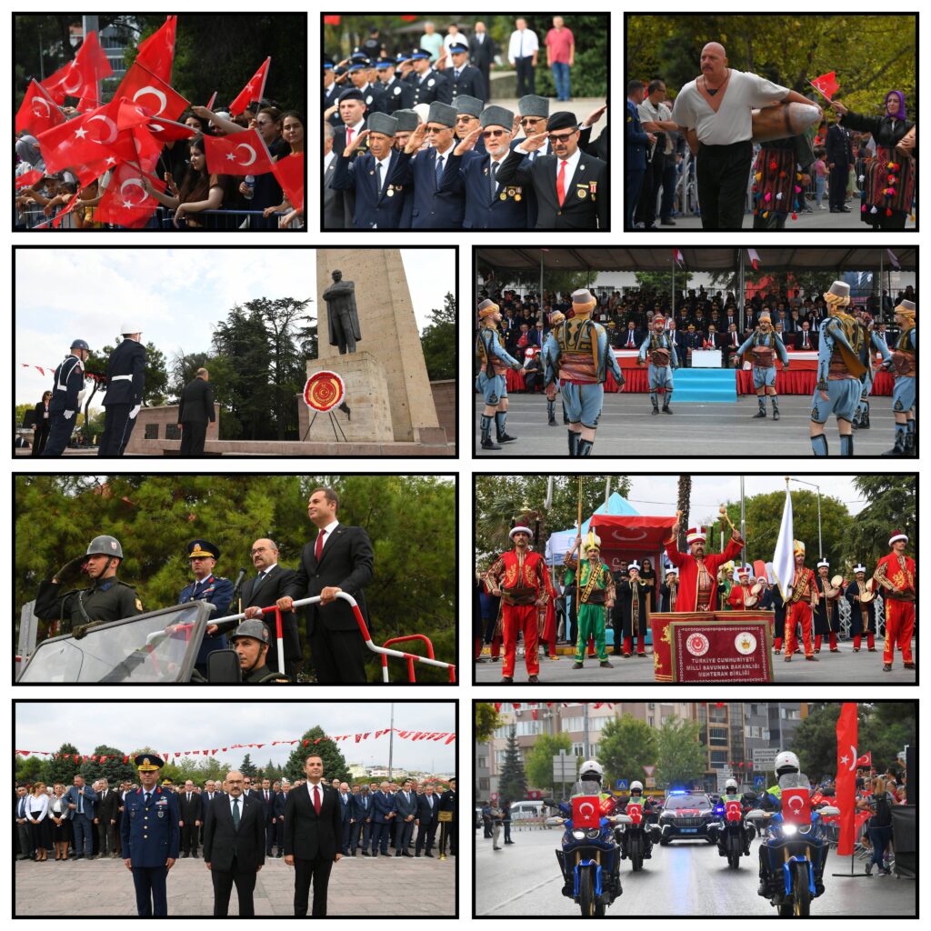 Daha sonra Kuvâ-yi Millîye Meydanı’nda devam eden kutlamalar Vali İsmail Ustaoğlu, Garnizon ve 9’uncu Ana Jet Üs Komutanı Hv.Plt.Tuğg. Gökhan Gürakar ve Büyükşehir Belediye Başkanı Ahmet Akın’ın vatandaşları selamlaması ile başladı.