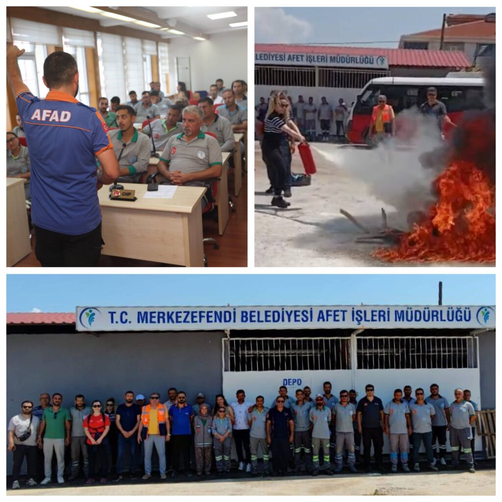 şekilleri ile müdahale yöntemleri anlatıldı. Eğitimin ardından Merkezefendi Belediyesi Afet