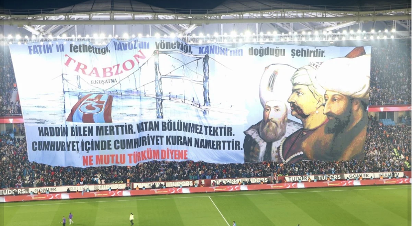 Trabzonspor’un maç öncesi açtığı pankartta, “Fatih’in fethettiği, Yavuz’un yönettiği, Kanuni’nin doğduğu şehirdir. Haddini bilen merttir. Vatan bölünmez tektir. Cumhuriyet içinde Cumhuriyet kuran namerttir. Ne mutlu Türk’üm diyene.” ifadeleri yer aldı. Trabzonsporlu taraftarların bu pankartı, Fenerbahçe’nin kullandığı, “Fenerbahçe Cumhuriyeti” ifadesine gönderme olarak yorumlandı ve konu orada kapandı.