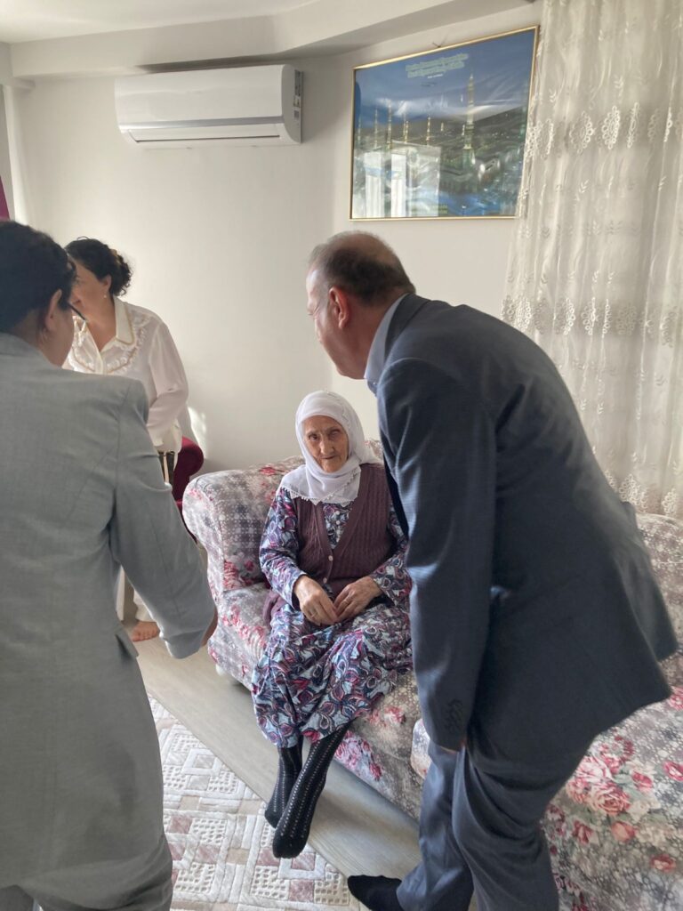 Bu kapsamda Merkezefendi Kaymakamı Abdullah Demir, eşi Elif Demir ve Sosyal Yardımlaşma ve Dayanışma Vakfı Müdürü, ilçede ikamet eden dört asırlık çınarı evlerinde ziyaret etti.