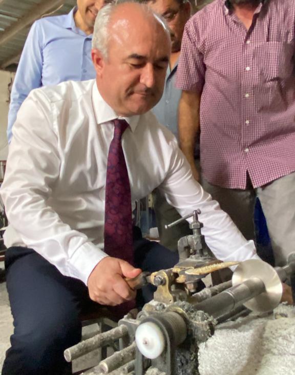 MHP İl Başkanı Yusuf Garip, sonrasında Osmanlı’dan günümüze ata mesleği olarak devam eden bıçakçılar diyarı Yatağan Mahallesini ziyaret etti. Burada yoğun ilgiyle karşılanan Garip, vatandaşlarla sohbet etti, dünyaca ünlü Yatağan Palası, bıçak üretiminin yapıldığı atölyeleri ve satış mağazalarını gezdi. Usta ellerde şekillenen görsel güzellikleri, kalitesiyle ününe ün katan Yatağan Palası ve bıçakları üreten ustalara, çalışanlara hayırlı işler diledi. Manda ve koç boynuzundan yapılan, görsellikleriyle büyük beğeni toplayan, hem ülkede hem de yurt dışından büyük ilgi gören el yapımı tarakların üreticisi Yatağanlı ustaları ziyaret eden Garip, tarakların yapılış sürecini de izledi. 5 Ağustos’da başlayacak ve 7 Ağustos’a kadar devam edecek 25. Yatağan Bıçakçılık Festivali ve Kefe Yaylası Şenlikleri Komite Başkanı olan Yatağan Mahalle Muhtarı Kamil Köprü ile de bir araya gelen Garip, Festivalin Yatağan Mahallesine ve Denizli’ye hayırlı olmasını diliyorum.