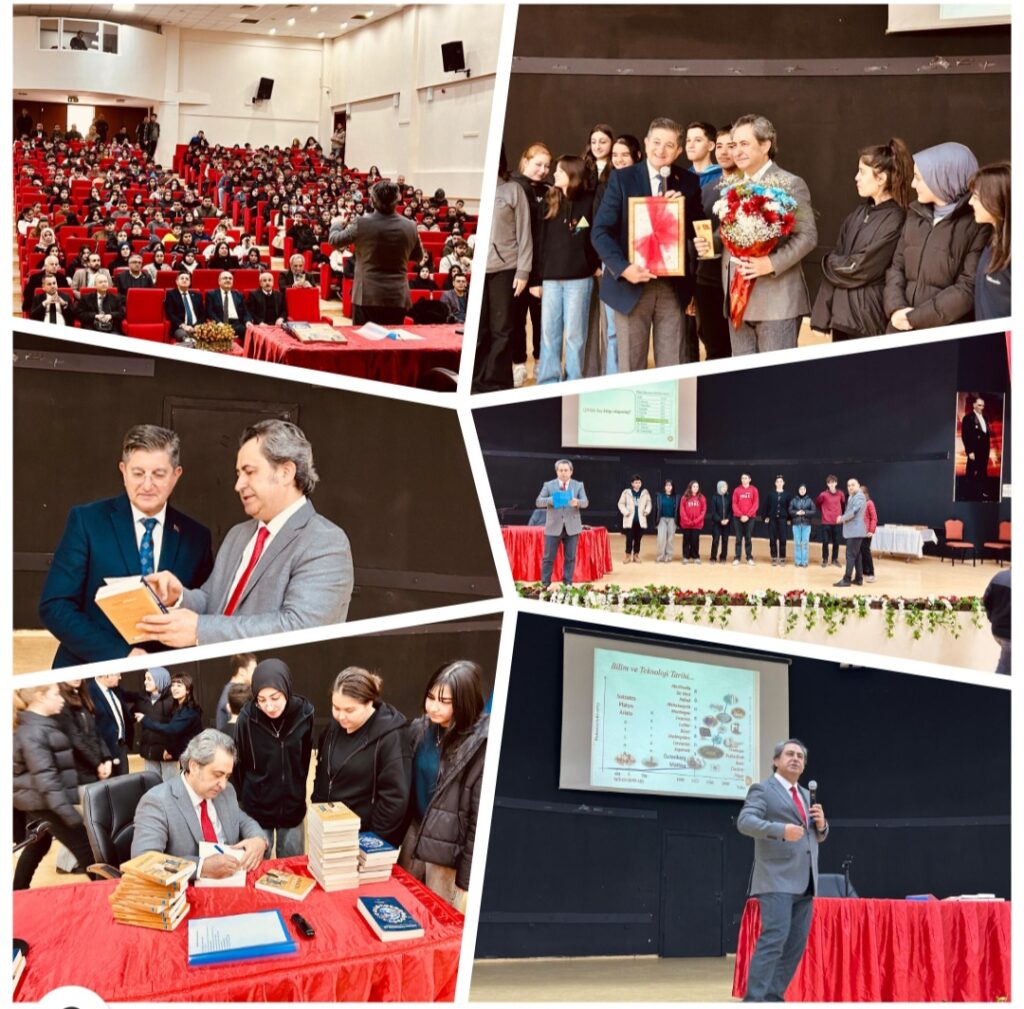 Konferansta konuşan Profesör Yılmaz şunları belirtti; “Dörtyol’da ilk kurşunu ateşleyip, milli mücadelenin ilk kıvılcımını ateşleyen Kara Mehmet Çavuş bugün olsaydı ilk kurşunu ne olurdu? Elbette; bilim, sanat, edebiyat, felsefe, belagat gibi eğitim ve kültürel değerler olurdu. Dünya, Endüstri 4.0 sürecini tamamlama aşamasında ve odağında toplumsal ergonomi ve insan olan yeni bir sürece yani Endüstri 5.0’a giriş yapmış bulunmaktadır. Riskler ve fırsatlarla bir Covid 19 dönemi yaşadık. Korkularımız, kaygılarımızla birlikte pek çok alanlarda büyük teknoloji hamleleri gerçekleştirildi. İnsan hayatını kolaylaştıran bu teknolojilerin ilk temeli CERN’de atıldı. Bugün kullandığımız internet tabanlı online ve mobil uygulamalarının fikri burada doğdu. Be teknolojik gelişmeler milli eğitim sistemimizi de yakından ilgilendirmektedir. Gençliğin eğitimine günümüz şartlarında yeni bir model olan STEAM uygulamaları geliştirildi. Artırılmış gerçeklik, 5G teknolojileri, Metaverse, ChatGBT 4.0 gibi yapay zeka uygulamaları hayatımızın her alanını kuşattı. Bizim de değişen dünya ölçeğinde gelişmeleri yakından takip etmemiz, teknolojiyi amaçları doğruldusunda etkili ve dozunda kullanmamız gerekmektedir. Aksi halde bu nimetler hayatımızı, geleceğimizi karartabilir. Endüstri 5.0 ile insan ve sosyal toplum, sürdürülebilirlik, dayanıklılık gibi üç temel boyut karşımıza çıkmaktadır. Burada, hayatın sağlıklı olarak sürdürülmesi, yeni tedarik ve üretim zincirleri, esneklik ve dayanıklılık, ergonomik ve konforlu bir hayat öngörülmektedir.”