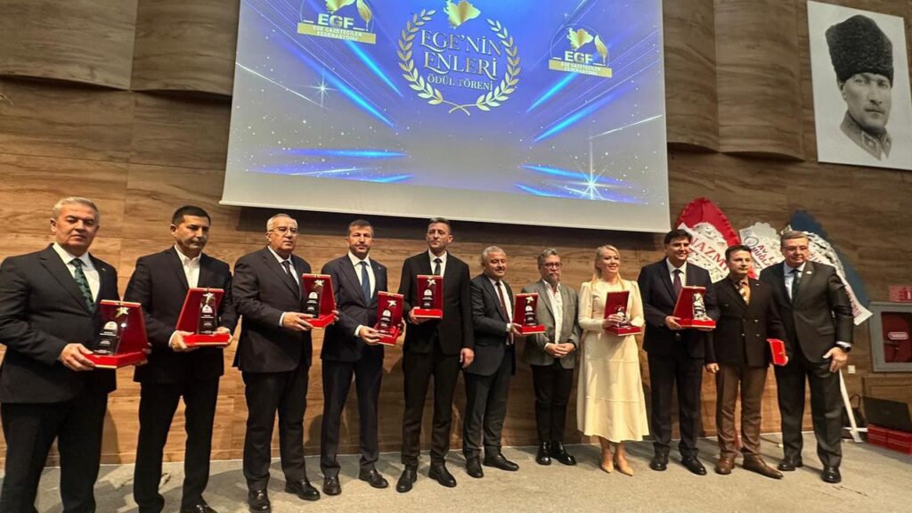 Ege Gazeteciler Federasyonu tarafından 10 Ocak Çalışan Gazeteciler Günü kapsamında düzenlenen “Ege’nin En’leri Ödül Töreni”, Muğla Büyükşehir Belediyesi Türkan Saylan Çağdaş Yaşam Merkezi Salonu’nda gerçekleştirildi. Ege Bölgesi genelinde kamu, yerel yönetimler, iş dünyası, spor ve toplumsal yaşamda başarı gösteren isimlerin ödüllendirildiği törende Aydınlı yöneticiler büyük başarıya imza attı.