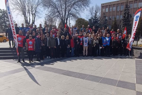 Program, saygı duruşu ve İstiklal Marşı’nın okunmasıyla başladı. Ardından sendika temsilcileri basın açıklamalarını kamuoyuyla paylaştı.