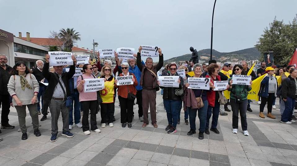 Türkiye’nin farklı illerinde ki okullarda ardı ardına yaşanan saldırı, şiddet olayları ve can kayıpları İzmir’in Foça İlçesi’nde düzenlenen yürüyüş, eylem ve basın açıklamasıyla protesto edildi. Yaşanan olayların bardağı taşırdığı, okullarda can güvenliğinin olmadığına vurgu yapılan basın açıklaması sonrası öğretmenler üç gün iş bıraktıklarını açıkladılar.
