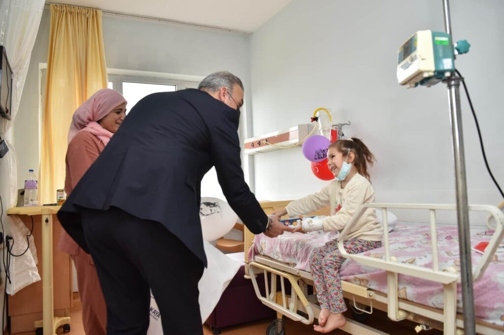 Bayramda sağlık sorunları nedeniyle arkadaşlarından ve okullarından uzak kalan çocukları da unutmadıklarını dile getiren Başkan Kaya, “Hastanede tedavi gören, arkadaşlarıyla koşup oynayamayan, çocuk festivalimize katılamayan yavrularımızın da bayram coşkusunu bir nebze olsun yaşaması için, kendilerini ziyaret ettik, küçük hediyelerle sevindirmek istedik. İnşallah bu yavrularımız da tedavilerini en kısa sürede tamamlayıp aramızda olacaklar ve arkadaşlarıyla koşup oynayacaklar. Bütün çocuklarımızı 27 Nisan Pazar gününe kadar devam edecek Çocuk Kitap Fuarı ve Çocuk Festivali’ne katılmaya davet ediyor, bayramlarını kutluyorum” diye konuştu.