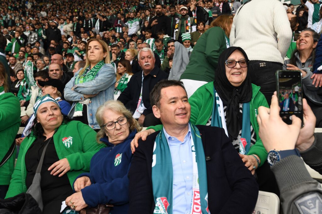 Osmangazi Belediyesi, Bursaspor’un Mardin 1969 Spor’u 2-0 mağlup ettiği karşılaşmada, Osmangazili kadınlar ve çocukların yanı sıra 21’incisini düzenlediği Osman Gazi’yi Anma ve Bursa’nın Fethi Etkinlikleri kapsamında kardeş şehirlerden gelen yabancı konukları da tribünlerle buluşturarak yeşil beyaz coşkuyu uluslararası bir paylaşıma dönüştürdü. Dostluk rüzgarının estiği tribünde Osmangazi Belediye Başkanı Erkan Aydın, Bursaspor’un hak ettiği yer olan Süper Lig’e geri döneceğine işaret etti.