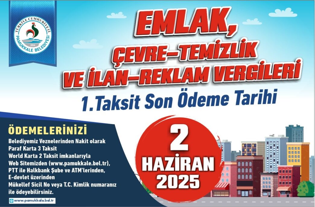 T.C. Pamukkale Belediyesi, Emlak, Çevre-Temizlik ve İlan-Reklam Vergisi birinci taksit