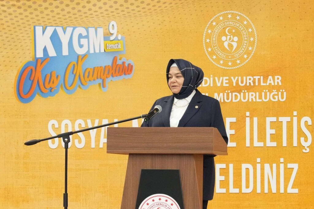 63.Hükümet Aile ve Sosyal Politikalar Bakanı ve AK Parti Eskişehir Milletvekili Ayşen Gürcan ise iletişimin gücüne değindiği konuşmasında, sosyal medyanın bilgiye ulaşımı kolaylaştıran, insanları bir araya getiren ve dünyayı küçülten önemli bir araç olduğunu söyledi. Gürcan, “İletişim, hakikatin en büyük taşıyıcısıdır ama aynı zamanda yanlış ellerde manipülasyonun da en etkili aracı olabilir.” diyerek, dijital çağda medya kullanımı konusunda farkındalık oluşturulmasının önemine vurgu yaptı.