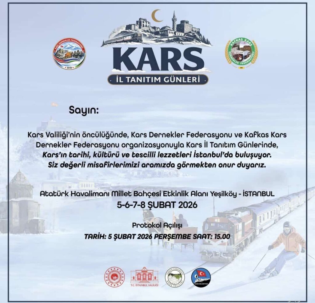 İstanbul’da yaşayan tüm Karslı hemşerilerimiz başta olmak üzere, dostlarımız ve gönlü Kars için atan herkes bu anlamlı buluşmaya davet ediliyor. Gelin; Sarıkamış’ın beyazını, Ani’nin sessiz çığlığını, Çıldır’ın ayazını ve Kars Kalesi’nin gururunu hep birlikte hissedelim.