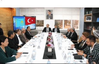 Başkan Serkan Sak CHP Genel Başkanı Özgür Özel, Grup Başkan vekilleri, TBMM Meclis Başkanı Numan Kurtulmuş, Grup başkanvekili Gökhan günaydın,