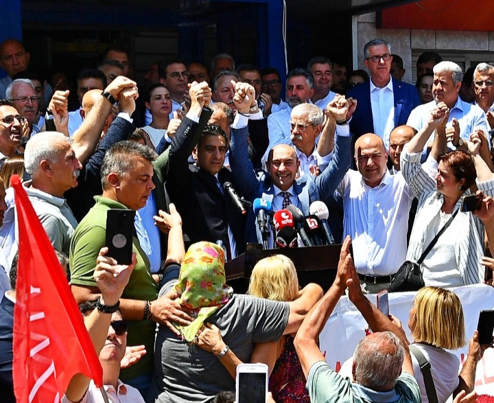 İzmir Büyükşehir Belediye Başkanı Tunç Soyer, “Bugün yine sözcüklerin boğazımıza düğümlendiği çok sıkıntılı bir gündeyiz. Haksızlığa uğramanın öfkesi içindeyiz. Son 20 yılda bu ülkede adalet çok hasar gördü. Türkiye Cumhuriyeti tarihinin hiçbir döneminde hak hukuk adalet bu kadar değersizleşmedi. Halkın hukuka güveni kalmadı. Hukuk her partiden, her siyasi görüşten, toplumun her kesiminden her bireye ve kuruluşa eşit mesafede durmayı gerektirir. Hukuk adalet gerektirir. Daha ortada kanıtlanmış bir iddia, ortaya çıkmış bir yargı kararı yokken, üstelik tutuklama talebi bile söz konusu değilken belediye başkanı arkadaşımızın görevden alınması siyasi ve keyfi bir karardır. Elbette bir gün gerçekler ortaya çıkacak. Halkın iradesini entrikalarla alaşağı etmeye çalışan bu zihniyet hak ettiği yeri bulacak. Asla umutsuzluğa, yılgınlığa yer yok. Bugün burada milletvekili ve belediye başkanı arkadaşlarımızla huzurunuzdayız. Size söz veriyorum kardeşlerim; bize güvenen hiçbir İzmirlinin başını öne eğecek bir iş yapmayacağız. Görevimizin son anına kadar, son nefesimize kadar alnımız açık başımız dik İzmirlinin bize verdiği desteğe layık olmak için canla başla aşkla çalışmaya devam edeceğiz” ifadelerini kullandı.