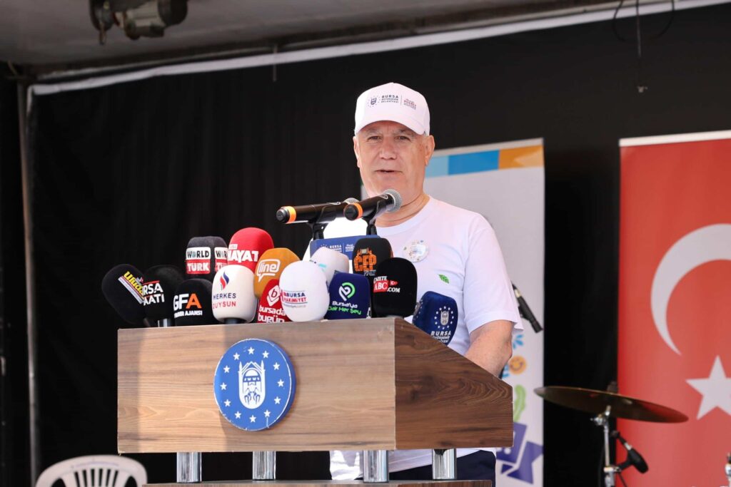 Bursa Büyükşehir Belediye Başkanı Mustafa Bozbey, konuşmasına Nâzım Hikmet’i ölümünün 62. yıl dönümünde anarak başladı. Marmara Belediyeler Birliği tarafından 3 Haziran Marmara Denizi Günü etkinlikleri kapsamında müsilaj sorununa dikkat çekmek amacıyla farklı belediyelerde programlar düzenlendiğini hatırlatan Başkan Mustafa Bozbey, gelecek kuşaklara temiz bir deniz aktarmanın herkesin sorumluluğu olduğunu dile getirdi. İklim değişikliğinin etkilerini fazlasıyla hissettiklerini söyleyen Başkan Bozbey, “Bursa Büyükşehir Belediyesi olarak Dünya Çevre Günü ve Çevre Haftası kapsamında çevreye ve doğaya dikkat çekmek amacıyla birçok etkinliğe imza atıyoruz. Gelecek nesillere havası ve suyu temiz, yaşanabilir yemyeşil bir doğayı bırakmak zorundayız. Bugün en kirli hava İnegöl, Kestel ve Gürsu’da var. Orhaneli’de termik santralin oluşturduğu kirlilik var. Derelerimiz zehir akıyor. Göllerimiz kirlenmiş durumda. Bunların sonucunda doğal hayat bozuluyor” dedi.