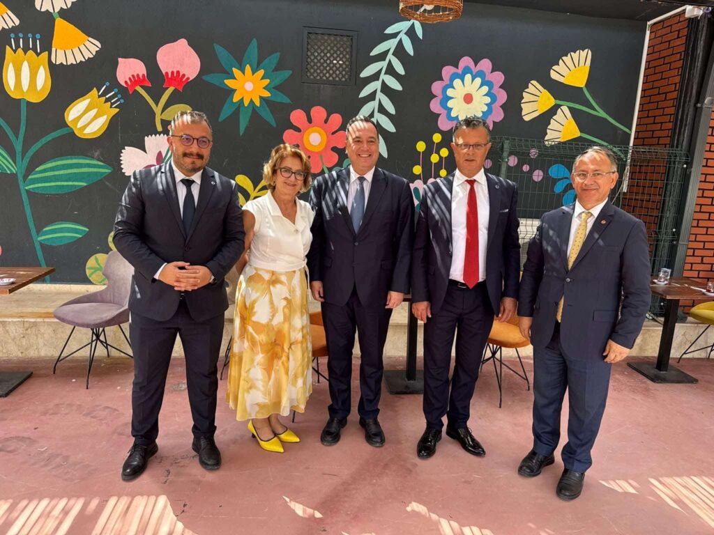 Heyet, encümen toplantısı öncesinde Alaşehir Belediye Başkanı Ahmet Öküzcüoğlu’nun makamında CHP Manisa Milletvekili Ahmet Vehbi Bakırlıoğlu ve Manisa Büyükşehir Belediye Başkanı Besim Dutlulu ile bir araya geldi.