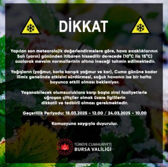 Genel GÜNDEM Bursa Valiliği Soğuk Hava Dalgası ve Fırtına İçin Uyarıda Bulundu EditörAzra Karaca17/03/2025