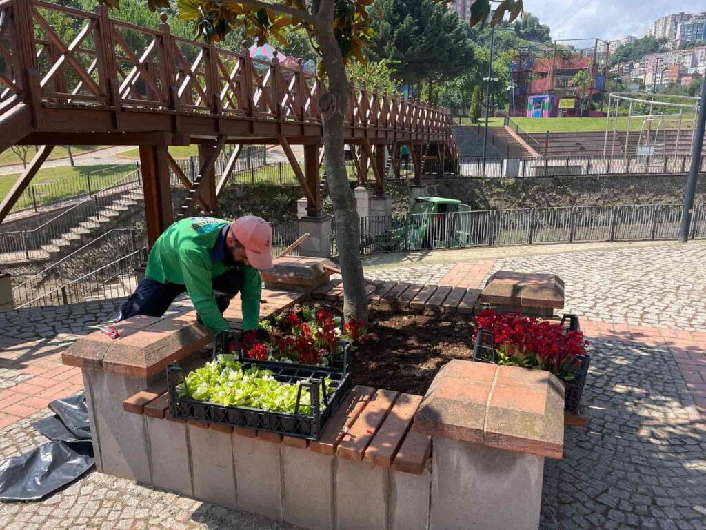 Trabzon Büyükşehir Belediyesi, şehrin her noktasını güzelleştirecek çalışmalara ara vermeden devam ediyor. Bu kapsamda Park ve Bahçeler Dairesi Başkanlığı’na bağlı ekipler, bitki dikme, bitki üretimi, çim biçme, budama, zemin onarımı, temizlik, ahşap, ferforje boyama, sulama ve ilaçlama gibi birçok çalışma gerçekleştiriyor. Aynı zamanda şehrin en işlek noktaları, ara refüjler ve parklar mevsim çiçekleri ile donatılıyor.