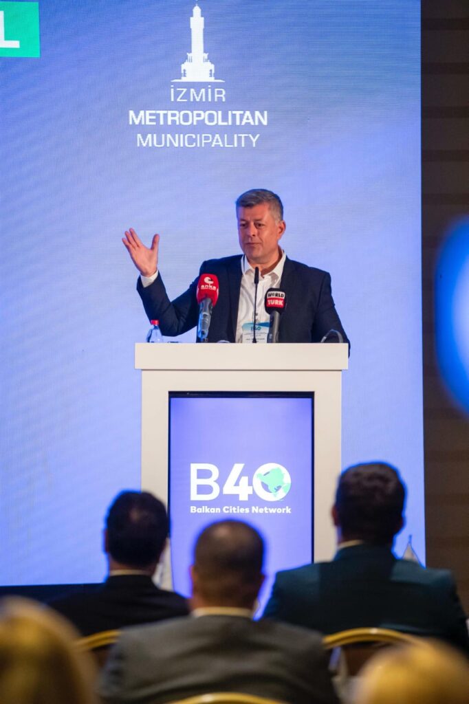 İzmir Büyükşehir Belediye Başkanı Dr. Cemil Tugay, “Ekrem İmamoğlu’nun eksikliğinin hepimiz farkındayız. Kendisi B40’ın kurulmasını sağlamıştır. Bugün biz hala onun ruhunu taşımaktayız. Çok kritik bir dönemden geçiyoruz. Burada dayanışma sadece bir değer değil, bir gerekliliktir. Şehirlerbirlikte hareket ettiğinde umut verebilirler, ayrımcılığın önüne geçebilirler. B40 Balkan Şehirleri Ağı, İstanbul’da kurulduğunda daha iyi bir gelecek, iş birliği mottosuyla kuruldu. Amaç; yerel demokrasi, sürdürülebilir kalkınma, iklim ve kültürel iş birliğidir. Burada güçlü bir felsefe var. Balkanlarla dayanışma köprüleri kurulması önemli. Mustafa Kemal Atatürk’ün ‘Yurtta sulh, cihanda sulh’ sözlerini hatırlamamız gerekiyor. Bu sözler bize gerçek barış ve ilerlemenin ancak sınırlar arasında, kültürler arasında ve nesiller arasında birlikte çalıştığımızda güvence altına alınabileceğini hatırlatıyor” diye konuştu.