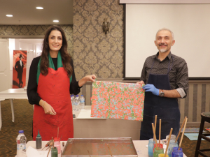 Kadınların ekonomiye katılmaları noktasında kurs gibi çalışmalar yapmaya devam edeceklerini belirten Mutlu, “Bursa ekonomisi ile önde olan bir şehir, bunun yanı sıra birçok kurum ve kuruluş şehrin kültürel, sosyal ve sportif yaşamına katkıda bulunuyor. Biz de Türk Anneler Derneği olarak, başta burs olmak üzere çeşitli çalışmalar yapıyoruz” dedi. Mutlu, her geçen gün daha da büyüdüklerini, giderek daha fazla öğrenciye burs imkanı sunduklarını ve bu doğrultuda ilerlemeyi hedeflediklerini vurguladı. Konuşmaların ardından Prof. Dr. Hicabi Gülgen ve dernek üyeleri ebru sanatını birlikte icra ettiler. Hem Gülgen hem de annelerin yaptığı çalışmalar eğlenceli anların ortaya çıkmasını sağladı.
