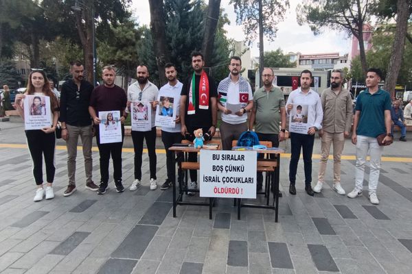 İsrail’in 7 Ekim’den bu yana 19 binden fazla çocuğu katlettiği vsöylenerek Gazze’de yüzlerce okul yıkıldı, sınıflar enkaza döndü, kütüphaneler kül oldu. Çocukların umutla beklediği teneffüs zilinin yerini bomba sesleri aldı. Defteri, kalemi alınan her çocuk yarım kalmış bir hayaldir. Boş sıralar, insanlığın vicdanına bırakılmış utanç tablosudur.
