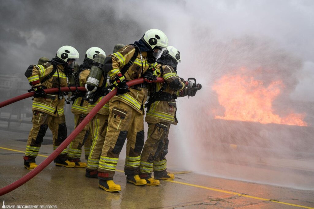 İzmir İtfaiyesi ekipleri ile düzenlenen tatbikatta, çok amaçlı kapalı alan yangın ve arama kurtarma eğitim simülasyonunda tatbikat düzenlendi. Senaryo gereği kapalı alanda çıkan yangın nedeniyle içeride birileri mahsur kaldı. Yine senaryo gereği yaralıların yardım çığlıkları yükseldi. Panik ve korkunun hakim olduğu alanda siren sesleri insan sesine karıştı. İtfaiye ekiplerinin yangına müdahalesinin ardından sağlıkçılar yaralıları alandan çıkardı.