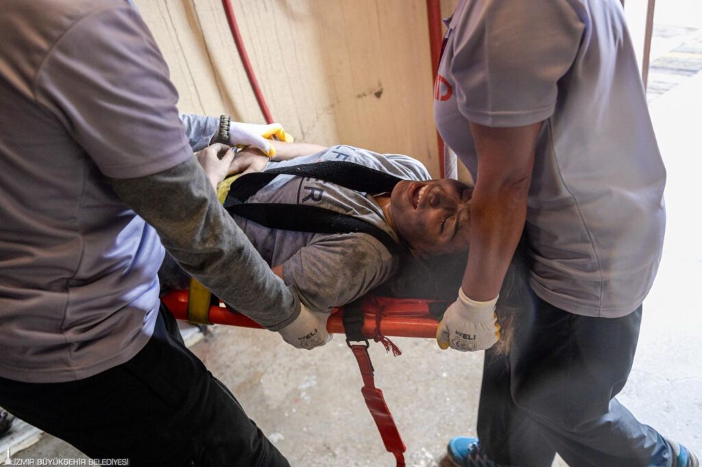İzmir Büyükşehir Belediyesi Eşrefpaşa Hastanesi ile Türkiye Acil Tıp Derneği, çoğu 6 Şubat Kahramanmaraş depremlerinde sahada görev yapan 20 kentten 60 acil tıp uzmanı ve 13 eğitmeni İzmir’de buluşturdu. Olası bir afette daha donanımlı olmak ve daha fazla can kurtarmak için düzenlenen yangın ve deprem tatbikatına katılan sağlık emekçileri zorlu hava şartlarına rağmen tatbikatı tamamladı. Katılımcıların büyük bir titizlikle gerçekleştirdiği tatbikat, gerçeğe yakın müdahale anlarıyla izleyenleri şaşkına çevirdi.