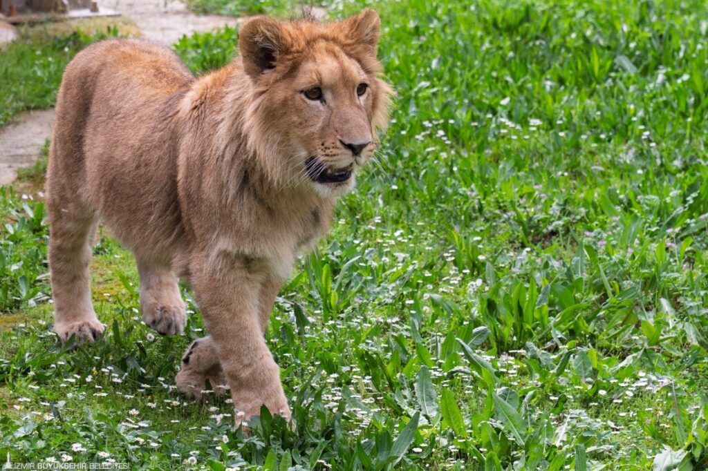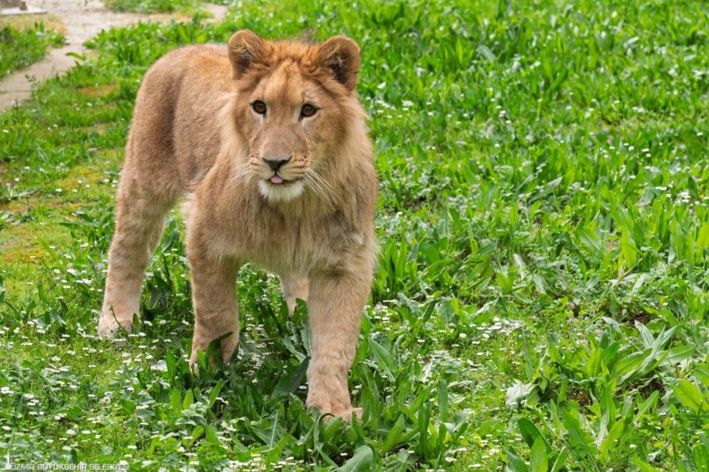 İzmir’in Torbalı ilçesinde güvenlik güçleri tarafından bir çiftliğe yapılan baskında ele geçirilen yavru aslan, İzmir Büyükşehir Belediyesi Doğal Yaşam Parkı’na teslim edildi. Henüz 10 aylık olduğu tahmin edilen ve uygun olmayan koşullarda yalnızca kedi maması ile beslendiği belirlenen yavru aslan bir ay süren tedavi ve bakımın ardından kendini toparladı. Minik yavru günlerini veteriner hekimlerin gözetiminde oyunlar oynayarak geçiriyor.