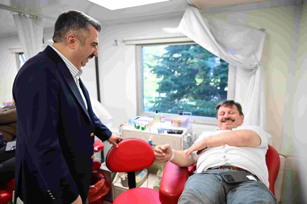 Bu bilinçle, tüm vatandaşlarımızı düzenli olarak Kızılay’a kan bağışlamaya davet ediyorum. Bugün de bir teşvik ve farkındalık oluşturmak amacıyla, kan bağışlayan mesai arkadaşlarımız arasından 16 kişiye, aileleriyle birlikte kahvaltı hediye ediyoruz” ifadelerini kullandı. Ziyaretin ardından Başkan Oktay Yılmaz ve Prof. Dr. Murat Tutanç, Yıldırım Belediyesi hizmet binası önünde bulunan Kızılay kan bağışı aracını ziyaret ederek kan bağışında bulunan belediye çalışanları ile sohbet etti.