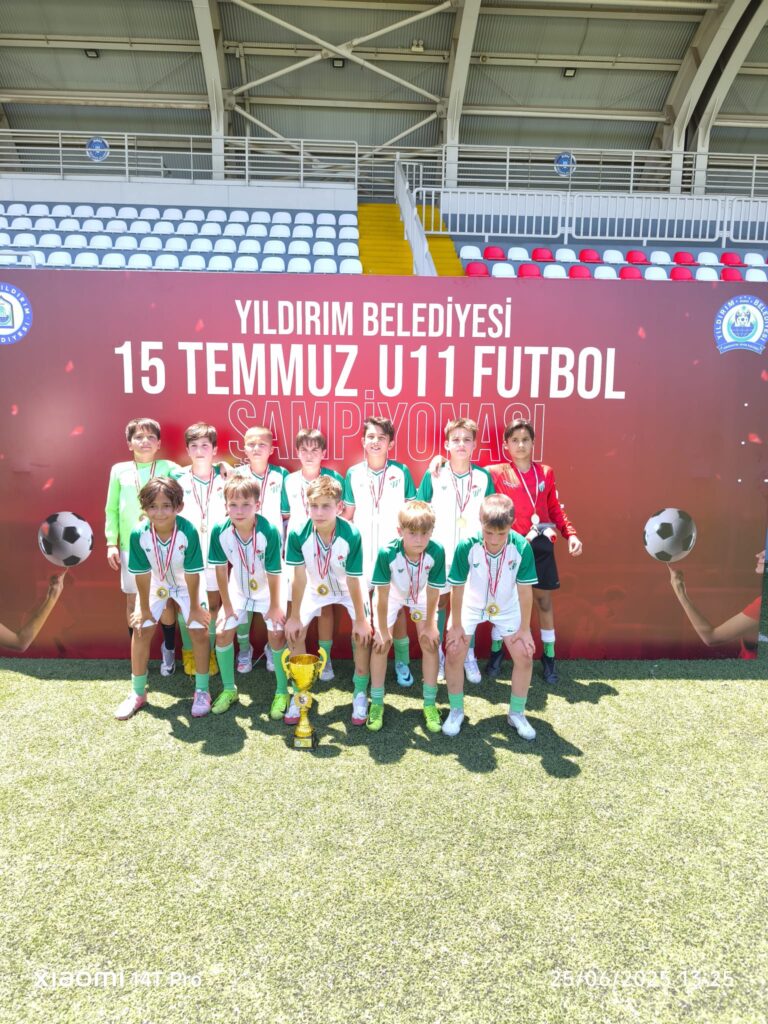 Yıldırım’ı sporda marka kent haline getirecek önemli yatırımları ilçeye kazandıran Yıldırım Belediyesi, gerçekleştirdiği turnuva ve şampiyonalarla da vatandaşları sporla buluşturmaya devam ediyor. 15 Temmuz Demokrasi ve Milli Birlik Günü haftası yaklaşırken, spor ve milli bilinci aynı sahada buluşturan Yıldırım Belediyesi, düzenlediği ‘15 Temmuz U-11 Futbol Turnuvası’ ile ilçede futbol şöleni yaşattı. Vakıf Bera Spor Tesisleri’nde düzenlenen turnuvaya 25 takım ve 400 sporcu katıldı. İki gün süren turnuva kıran kırana maçlara sahne oldu. Kardeşlik, dayanışma ve centilmenlik ruhu içinde geçen mücadelelerin ardından, normal süresi 2-2 biten final maçını penaltı atışlarıyla kazanan Bursaspor şampiyon oldu. Çağlayan Spor’un ikinci, Kestel Genç Yetenekler Spor’un üçüncü olduğu turnuvayı Fethiye İdman Yurdu ise dördüncü sırada tamamladı.