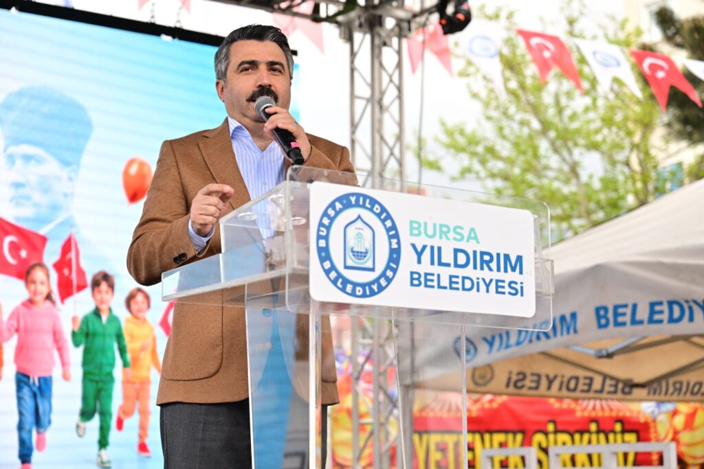 Çocukları bu mutlu günde yalnız bırakmayan Yıldırım Belediye Başkanı Oktay Yılmaz, etkinlik alanını gezerek miniklerle ve aileleriyle bir araya geldi. Bayram coşkusuna ortak olan Başkan Yılmaz, “23 Nisan, milletimizin bağımsızlık meşalesini yaktığı, egemenliğin kayıtsız şartsız millete geçtiği müstesna bir gündür. Gazi Mustafa Kemal Atatürk’ün bu anlamlı günü çocuklara armağan etmesi, onlara duyulan güvenin ve sevginin en somut göstergesidir. Yıldırım Belediyesi olarak bizler de geleceğimizin teminatı olan evlatlarımızın yüzündeki bir tebessümü her şeyin üstünde tutuyoruz. Çocuklarımız bizim en büyük hazinemiz, yarınlarımızın mimarlarıdır. Onların nitelikli, donanımlı ve mutlu bireyler olarak yetişmesi için tüm imkanlarımızı seferber ediyoruz. Bugün burada gözlerindeki o parıltıyı görmek bizler için en büyük motivasyon kaynağı. Tüm çocuklarımızın ve milletimizin 23 Nisan Ulusal Egemenlik ve Çocuk Bayramı’nı en içten dileklerimle kutluyorum” ifadelerini kullandı.