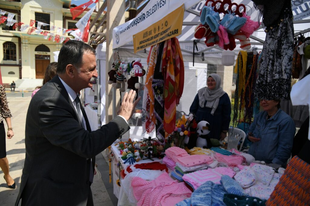 El emeği göz nuru eserler meraklılarını bekliyor. 486.’cı Uluslararası Manisa Mesir Macunu Festivali etkinlikleri kapsamında Manisa Büyükşehir Belediyesi, Yunusemre Belediyesi ve Şehzadeler Belediyesi iş birliği ile üreten kadınların eserleri mesir şenliklerine renk katıyor. Emekliler Parkı’nda kurulan stantlar ile el emeği eserler alıcılarının beğenisine sunuldu. Yunusemre Belediyesi bünyesinde hizmet veren 11 Kadın Dayanışma ve Eğitim Merkezi’nde eğitim gören kursiyerlerin el emeği göz nuru ürünleri festival süresince meraklılarının beğenisine sunulacak. Festivalin ilk gününde stantları Yunusemre Belediye Başkanı Semih Balaban ve Belediye Başkan Yardımcısı Emine Özge Arslan da ziyaret ederek kursiyerlere bol kazançlar diledi. Stantları tek tek gezen Başkan Balaban, üreten kadınların yanında olmaya devam edeceklerini belirtti.